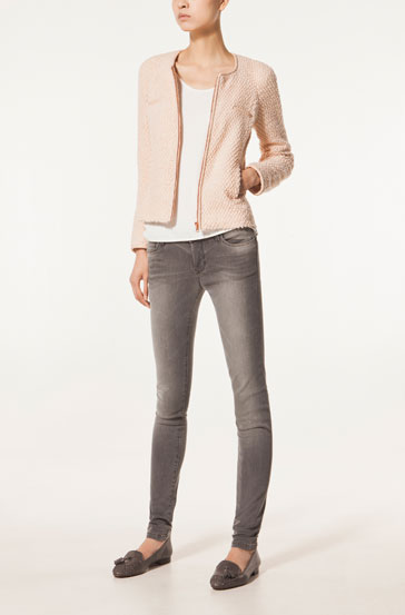 Fantasy cut jacket with leather trim £69.95 from £99.95 - Massimo Dutti. A complete nod to Spring with this gorgeous blush shade. Easy to wear now though with grey, as here. Or looks lovely with tan and white as well. Ditto khaki.