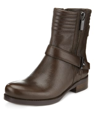 Leather Stretch Zip Padded Biker Boots in Chocolate £85