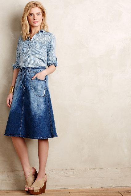 And today, we're ringing the changes with the denim skirt. Say goodbye to your pelmet mini and hello to the old lady length friendly A line versions.