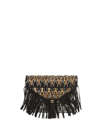 Black Aztec Beaded Fringe Tassel Trim Clutch £22.99