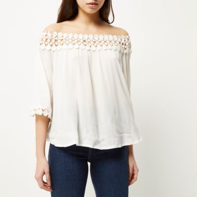 Cream Lace Bardot Top from River Island £25