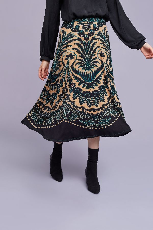 Robyn Printed Midi Skirt from Anthro £108 and also works really well with flat shoes.