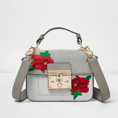 Grey Floral Embroidery Lock Front Satchel Bag £26