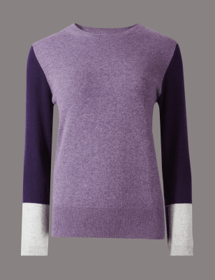Pure Cashmere Colour Block Jumper in Grape Mix £85