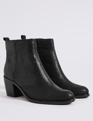 Black leather faux snakeskin boots were £49.99 now £18.99