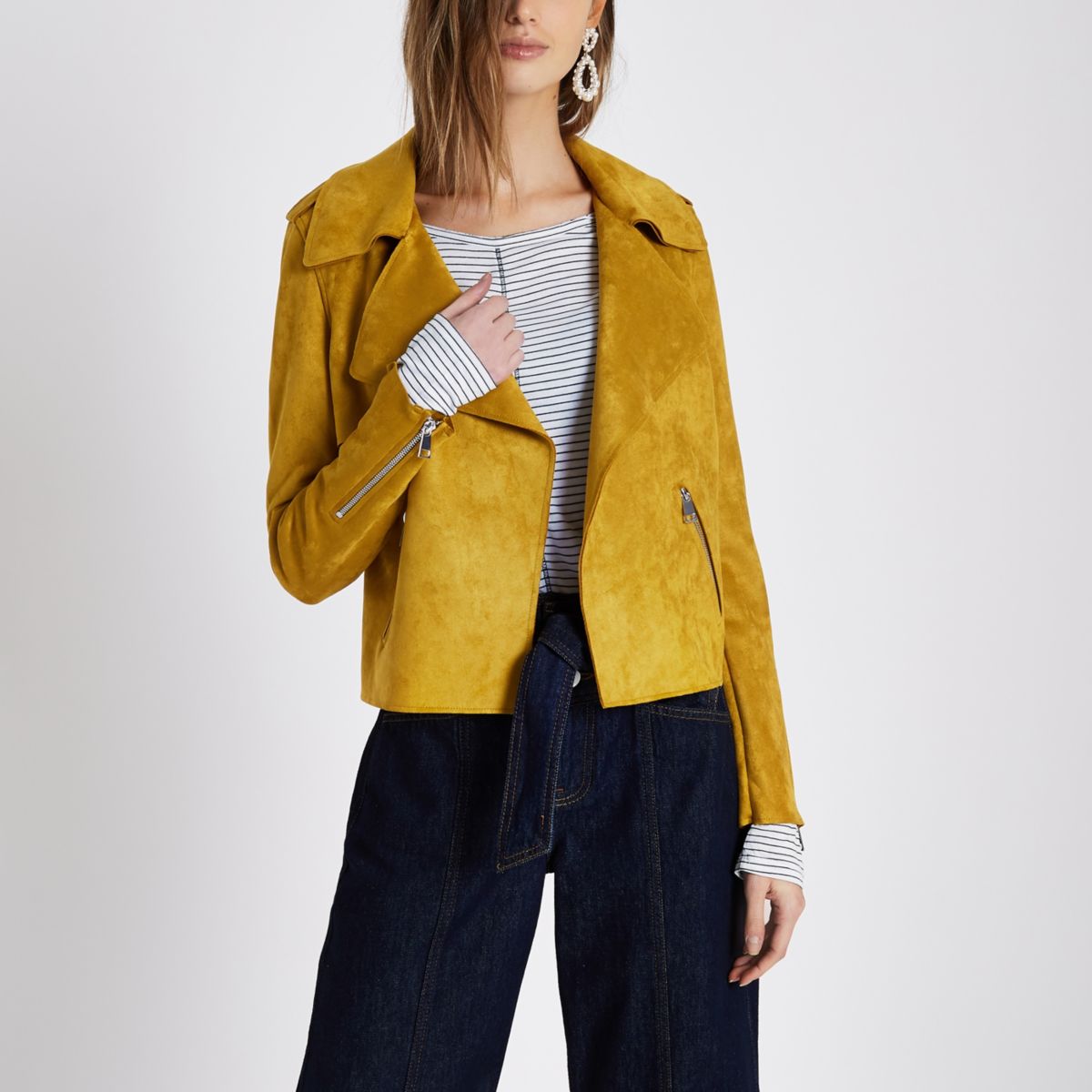 A jacket with a difference at River Island. These are perfect if you don't fancy the fussiness and detailing of a biker jacket but like the shape - this is a pared back, simple and one could say, more elegant version. This comes in SIX different colours including:-