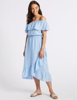 Pure Linen Half Sleeve Bardot Dress £45