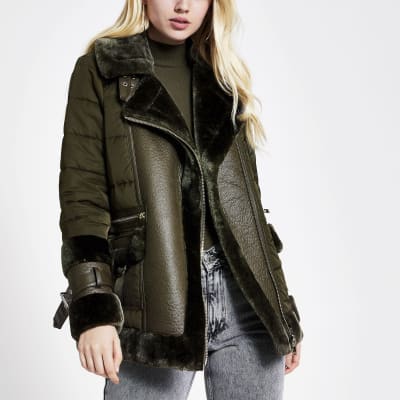 Khaki faux fur trim puffer coat from River Island was £85 now £40