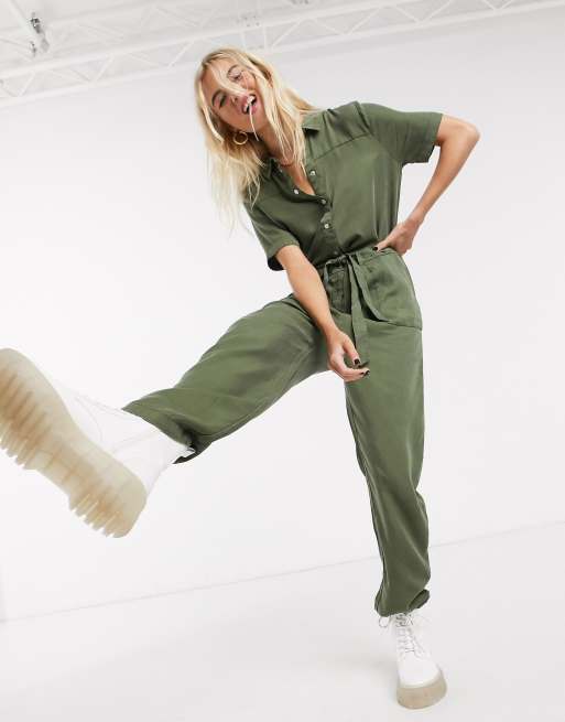 Noisy Utility Jumpsuit with tie waist in khaki £50