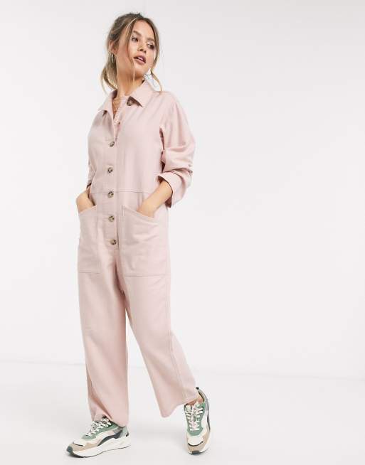 ASOS DESIGN lounge easy button jumpsuit with pockets in blush £48