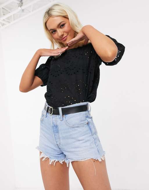 Black Broderie Short Sleeve Blouse from Topshop £29