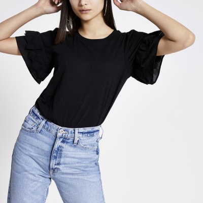 River Island short sleeve broderie anglaise frill sleeve tee £20