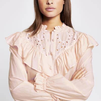 ASOS DESIGN high neck swing ruffle broderie blouse £28