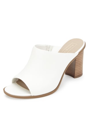 White premium leather mules £39.99 4 inch heel. Note - old gimmer writing... hence yes, it has come to this - I am having to put the heel height when it's written, on the shoes. I am quite grateful though that many of you have come out in geriatric solidarity at not being able to wear super high heels anymore. Therefore from now on I will be giving a PSA of heel heights. You're welcome. (I don't provide the reading glasses though which, if you're anything like me, you will also need to read this.....) The Clarks ones are a 3.5 inch heel. The M&S ones are 80mm. Thanks to New Look, we can learn that 10mm is 4 inches. I am now officially boring myself. There may be a rethink on this heel height info thingy.....