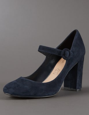 Navy Suede Block Heel Court Shoe from Autograph at M&S £49.50