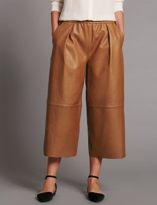 Leather Wide Leg Cropped Trousers in Conker £199 (POCKETS!!)