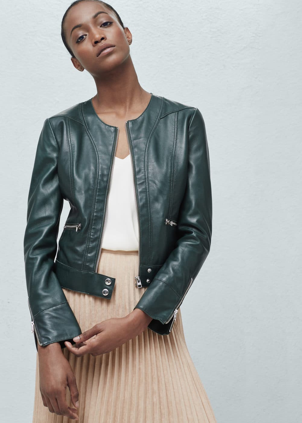 Leather bargain of the day isn't blue but is green, at Mango using the code above.