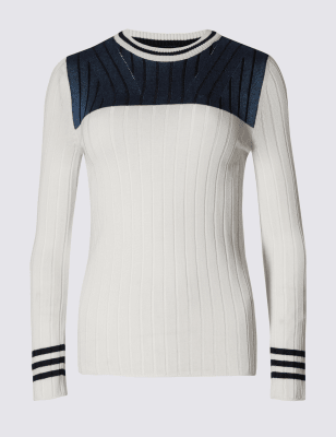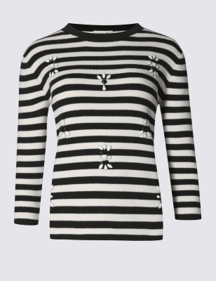 Tailored Fit Cotton Blend Embellished Striped Jumper from M&S £45