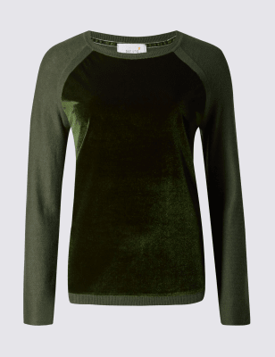 Tailored Fit Long Sleeve Velvet Jumper with Merino Wool £35