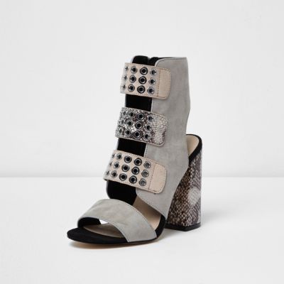Grey Snake Strappy Eyelet Blocked Heel Sandals £55