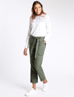 Pure Linen Straight Leg Trousers in khaki £29.50