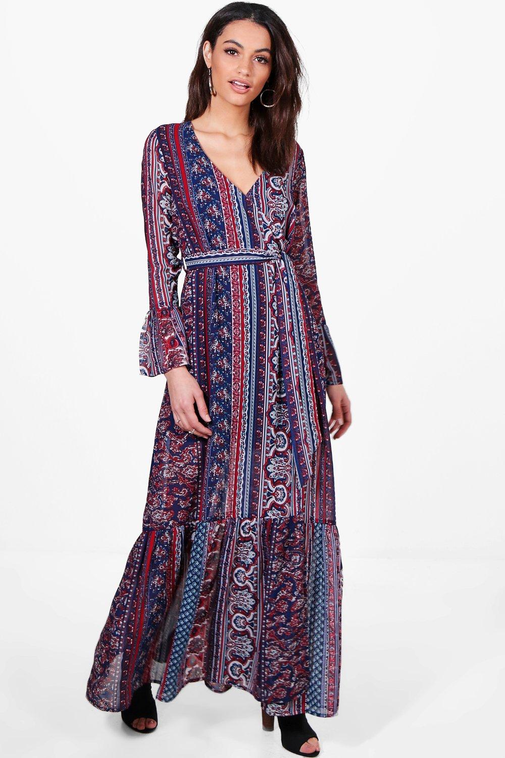 Liz Flute Sleeve Wrap Western Print Maxi Dress £22