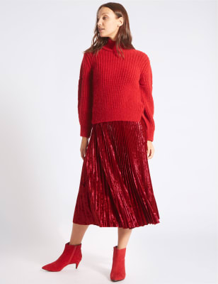 Velvet Pleated A-Line Midi Skirt from M&S £35
