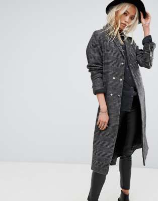 Religion Longline Trench Coat in Prince of Wales Check £145