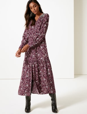 Floral Print Long Sleeve Maxi Shirt Dress £45