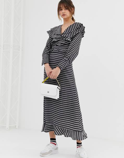 Ghospell midaxi ruffle dress with bib in gingham £75