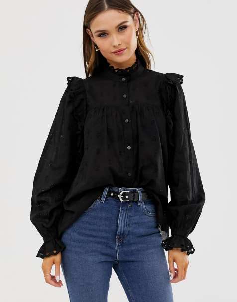 ASOS DESIGN ruffle long sleeved blouse in broderie £34