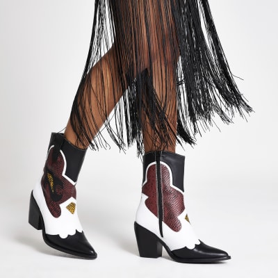 White Leather Cutout Cowboy Boots from River Island £110