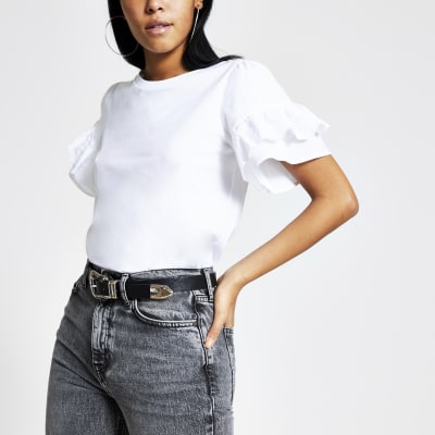 River Island short sleeve broderie anglaise frill sleeve tee £20