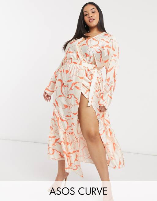 ASOS DESIGN Curve satin wrap dress tiered maxi dress £48